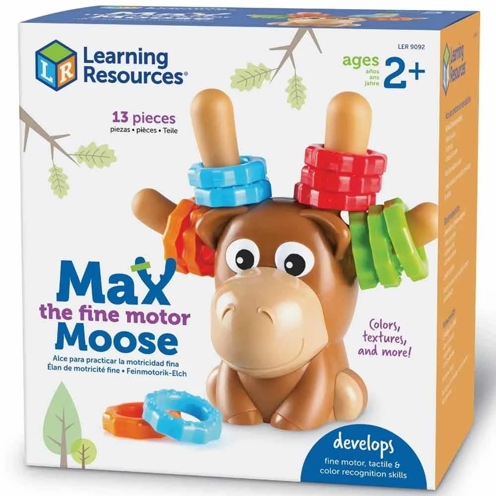 Max the Fine Motor Moose by Learning Resources is the friendliest fine motor toy for toddlers. This mighty moose comes with 12 grabbable rings.
