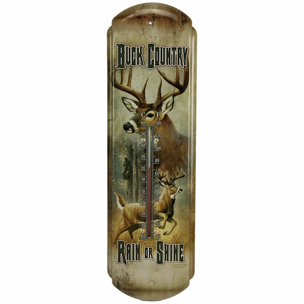 These superior quality thermometers are manufactured with a durable four color process that will stand up to whatever environmental conditions Mother Nature can dish out. Featuring great licensed art by renowned artists. Standard size of 5 x 17 high. Packaged in blister pack peggable display card.