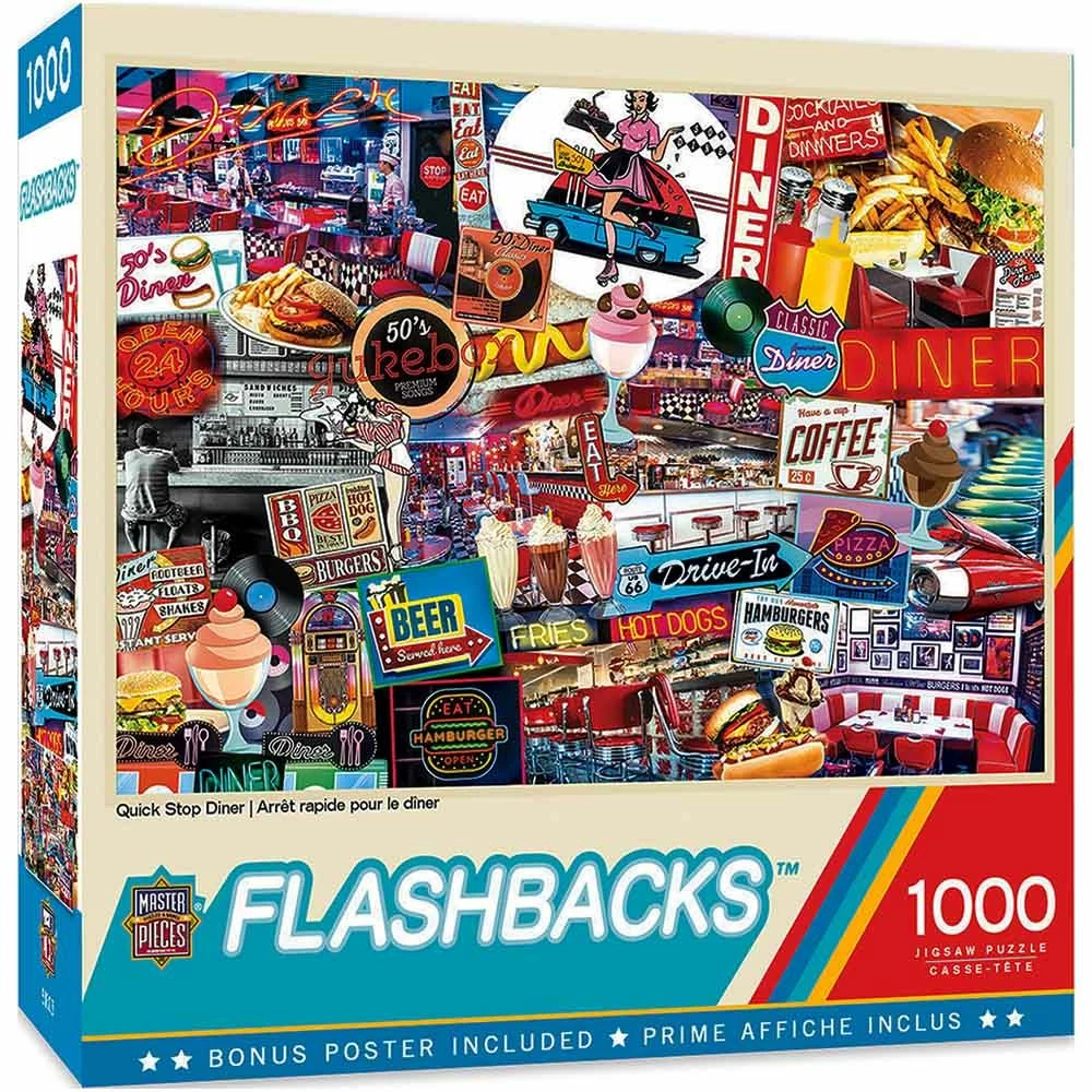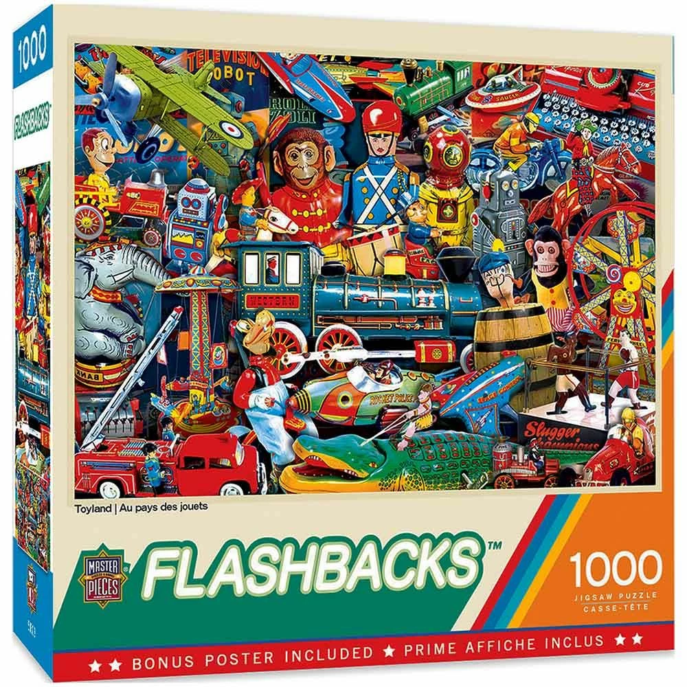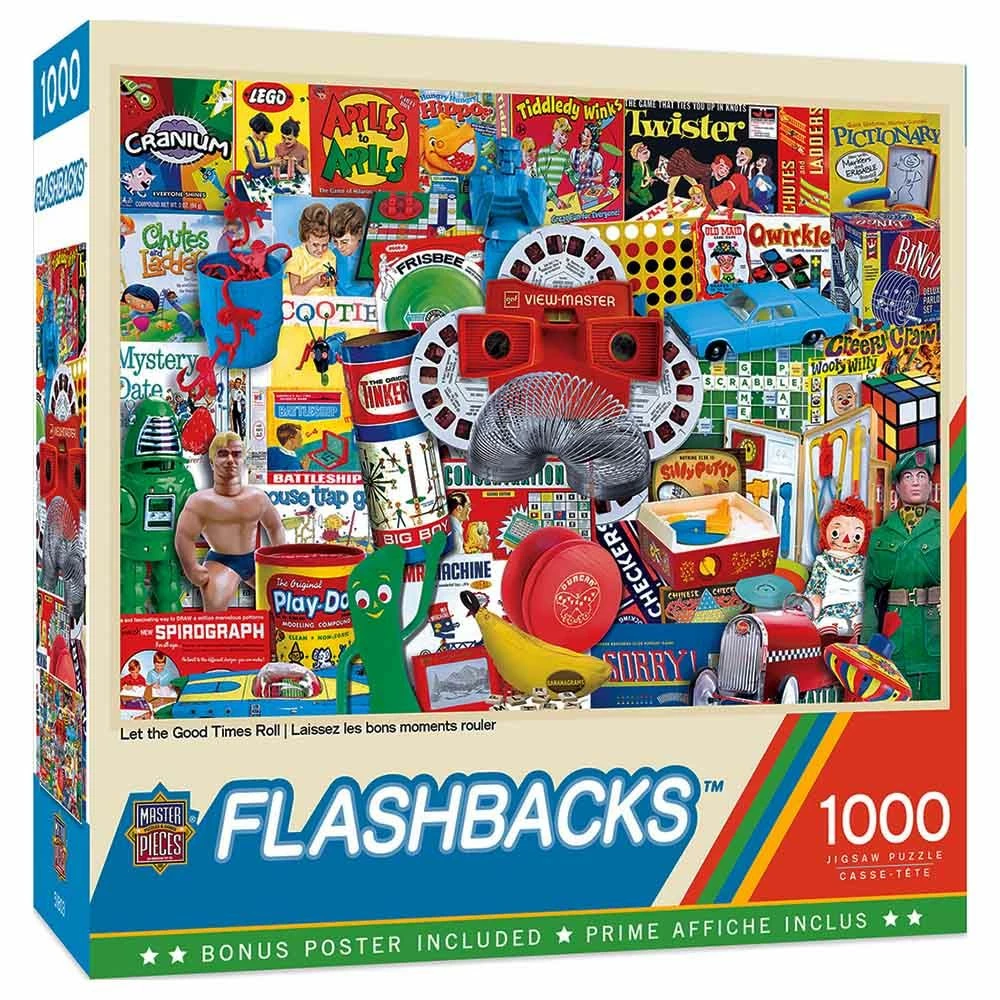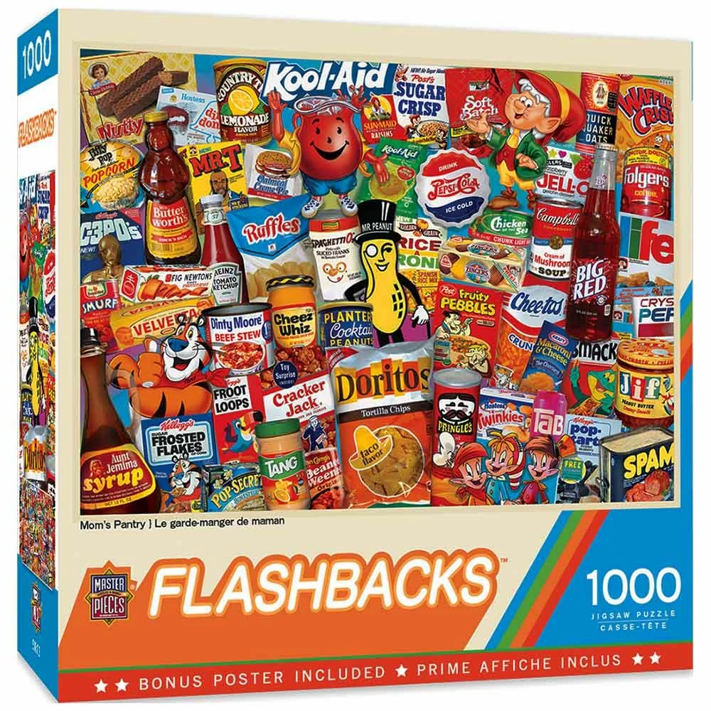 The 1000pc Flashbacks Collection has a nostalgic feeling of different things that take you back to your childhood days. These images include classic retro board games, tin toys, gas station signs, and favorite foods from mom's pantry. These timeless puzzles are a throw-back to yester-year. To reduce their impact on our environment, the chipboard used in these puzzles is made of recycled material.