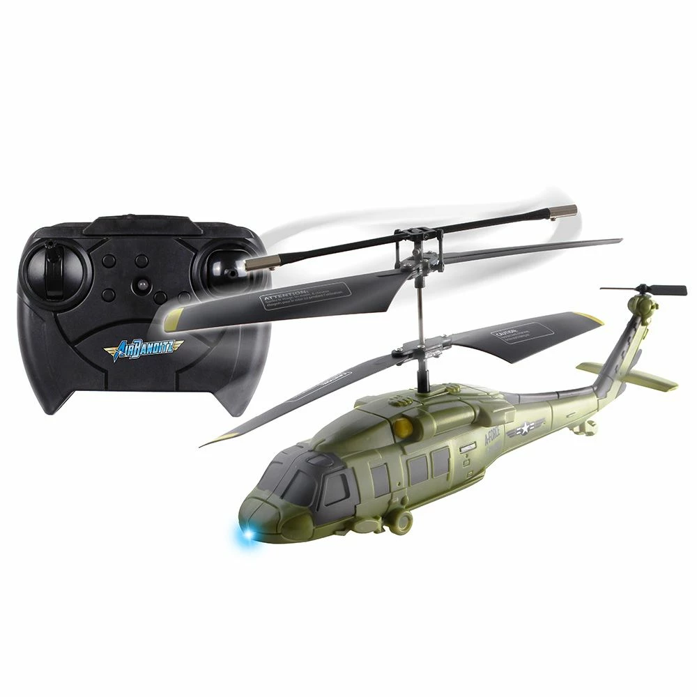 The Sikorsky UH-60 Black Hawk has been cutting through the skies since 1974 and joined the US Army's aerial arsenal in 1979. It is still flown around the world by many countries. This remote controlled helicopter by Air Banditz is much smaller than the full sized original, but it is still incredibly fun to fly. Officially licensed from Sikorsky! Features a strong, lightweight frame with a tail rotor, built-in rechargeable battery, and dual main rotors with self stabilizing technology. Can fly in 6 directions, has working lights, backup rotors and it is TRI BAND (which means 3 helicopters can be flown at the same time).