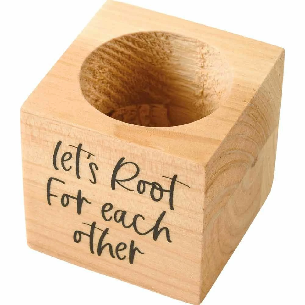 A set of three wooden planter magnets designed to hold small air plants (not included). Magnets feature hand lettered "Let's Root For Each Other," "You Grow Girl," and "Ready, Set, Grow" sentiments. This house plant home decor is perfect for any space.