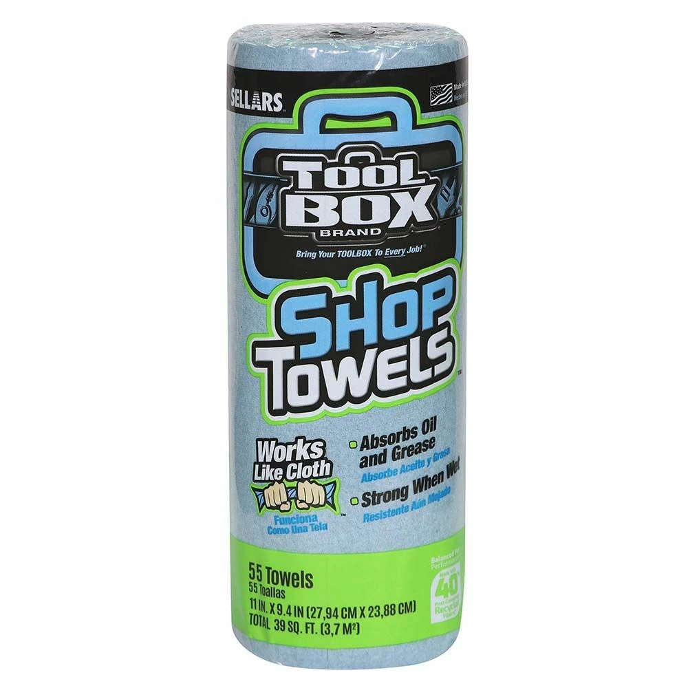 Sellars Tool Box Blue Shop Towels are just the right size to handle your dirtiest jobs around the shop or home. They are extremely soft an absorbent. They are made with 40% post-consumer recycled fibers (based only on the product's fiber content, which represents a minimum of 85% of the total product weight). Made in the USA.