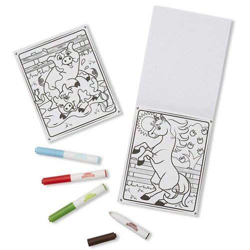 Melissa & Doug Magicolor On the GO Farm Animals Coloring Pad uses amazing Magicolor technology that lets children pick a marker, fill a scene, and see colors magically appear on the page–all completely mess-free! Ink in the four included markers is invisible anywhere else but creates instant color on the 18 pages of scenes featuring cows, horses, chickens, cats, and even a cheerful scarecrow. As a bonus, the spiral-bound book's all-inclusive format comes with handy storage for the markers, making it great for travel!