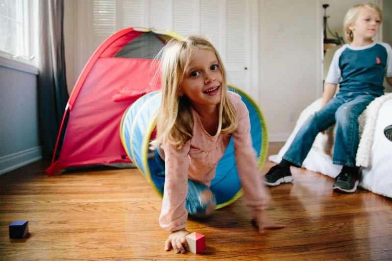 Pacific Play Tents® primary-colored Hide Me Tent and Tunnel Combo is large enough for group play while the easily attachable 4 feet long x 19 washable floor made of polyethylene keeps spills from ruining the carpet as well as keeps you dry from the wet grass. Great fun for an outdoor backyard camp out on a hot summer night. The only limit this tent has is your own imagination. As an added bonus your child will not only enjoy countless hours of play but they will also hone their muscle and motor skill development in a fun and stimulating environment. Let the adventures begin!