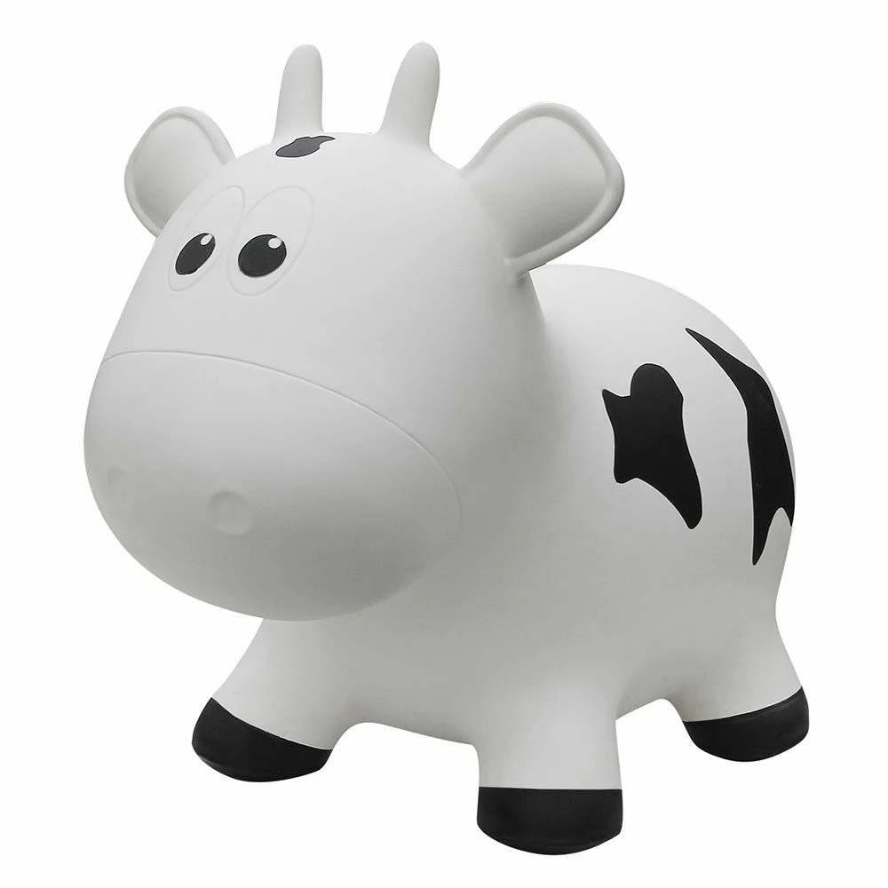 Farm Hoppers by Next Generation are fun, whimsical, brightly colored, inflatable animals with soft gripable ears for children to hold onto while they bounce around. With feet touching the ground and hands holdings onto the ears, kids can bounce, scoot and walk around in a supported manner that help develop core muscle and coordination. These delightful bouncers are made from high quality BPA- free PVC and can be used both indoors and out. They come complete with their own soccer valve, needle and pump in an attractive box. The fact is that they are just plain fun and keep children highly entertained while providing and outlet for that relentless toddler energy.Pump Included