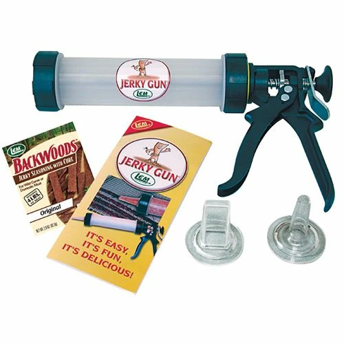 LEM? Jerky Gun is made to give years of performance. The heavy duty drive system of the Jerky Gun handles ground meat like a charm. Load the barrel of the Jerky Gun with lean, seasoned ground meat and shoot out flat strips of jerky or round snack sticks. Barrel will hold 3/4 lbs. of meat.