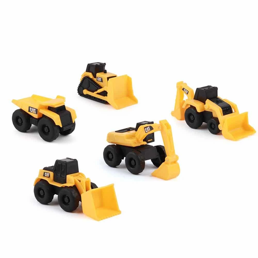 Bring the whole construction site to even the smallest of spaces with the CAT Little Machines 5 pack. These mini 3 in. push-powered vehicles allow you to be in control every step of the way. Easily move and pose the articulated buckets and booms just like the real thing. Set includes Wheel Loader, Dump Truck, Excavator, Bulldozer and Backhoe.