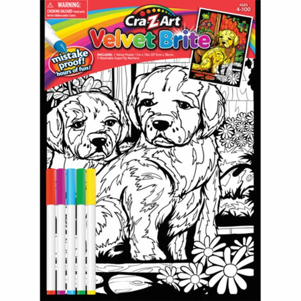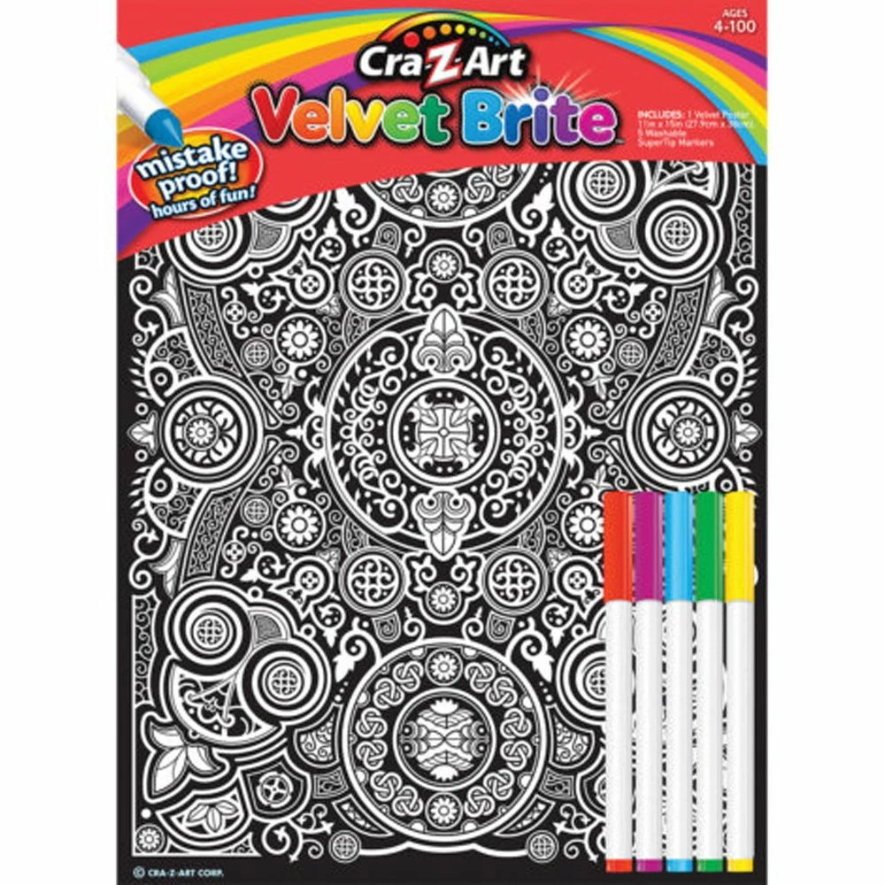 Cra-Z-Art Velvet Brite Posters are so fun to color! They come with 5 highly pigmented super tip makers – perfect for coloring small and large spaces! Bring these awesome black and white patterns to life with color! There are no mistakes, so easy to do! Completed pieces make great wall decor, so much fun!
