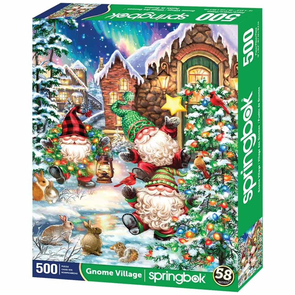 This Springbok Puzzle features Gnomes in stocking caps that fall to their nose, compose a silly diddly as they decorate in the snow. Once your own home has been decked, treat yourself to a break with 500 pieces–each one as unique as winter flakes.