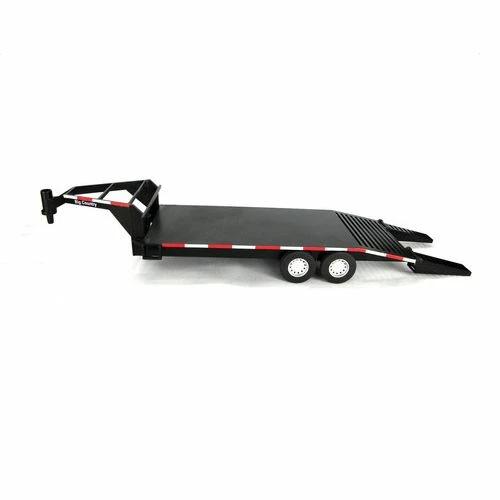 Big Country Toy Flatbed Trailer is great for hauling tractors, hay, or equipment. It hooks to our Ford Dually truck. The ramps on the back are perfect for hauling four wheelers or tractors. The hitch raises and lowers just like dad's.