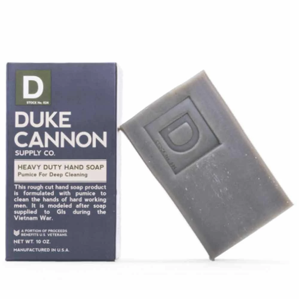 Duke Cannon doesn't spend all day typing emails on a laptop, and he sure as hell hasn't gotten a manicure. His hands build tangible things like V8 engines and two-story decks. And hard work makes hands dirty. That's why Duke Cannon created a Heavy Duty Hand Soap, a rough cut brick formulated with pumice to clean the hands of hard-working men. It is modeled after heavy duty soap supplied to GIs during the Vietnam War. Like all Duke Cannon Bricks of Soap, this one weighs in at a hefty 10 oz., almost 2x the size of other pumice soaps.