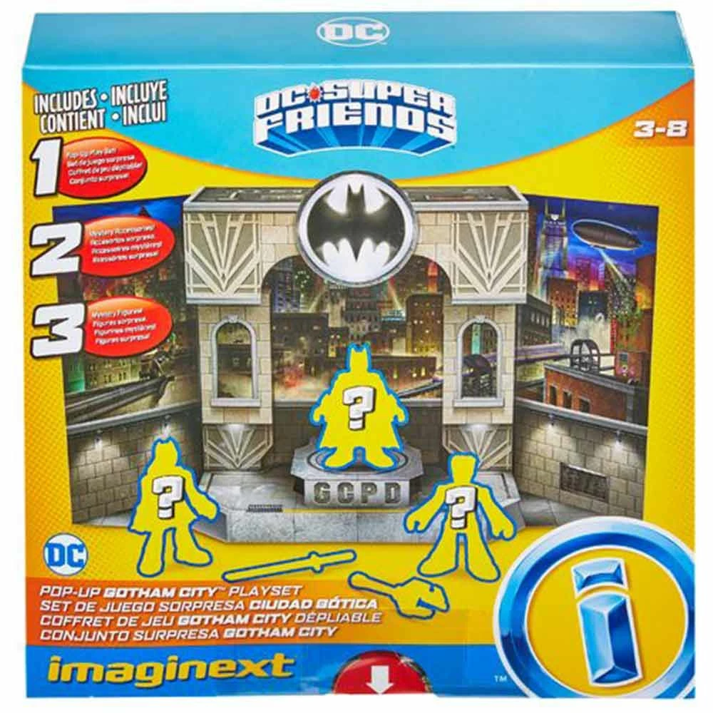 Young crimefighters can unbox and act out their own action-packed Batman™ adventures with the Imaginext® DC Super Friends™ Gotham City™ Pop-Up Playset from Fisher-Price®. Kids can open the secret doors of the playset to discover the 3 mystery figures and 2 play accessories hidden inside. Then unzip and pop up the double-sided playset to set the stage for awesome Super Hero versus Super-Villain action in downtown Gotham City™ on the front or down Park Row in the back. With 4 sets of character figures to collect, there’s no telling which surprise mystery figures kids will find inside! Imaginext® Imagine What’s Next!™