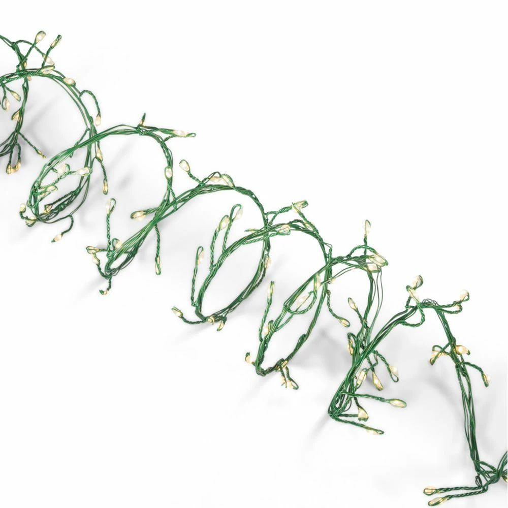 Everlasting Glow Micro LED Garland Lights provides endless possibilities for expressing your own unique decorative style. This 6-foot long electric Firecracker garland has no less than 144 warm white, energy efficient, micro LED lights are affixed along the copper color wire at the end of 1-inch long jump-ups to give that dynamic Firecracker accent. This garland features a 9-foot long cord with outdoor-capable adaptor and an 8-function controller to set combination, waves, sequential, slow glow, chasing flash, slow fade, twinkle-flash and steady on effects. Perfect for indoor or outdoor use, you'll get years of enjoyment from this beautifully glowing garland!