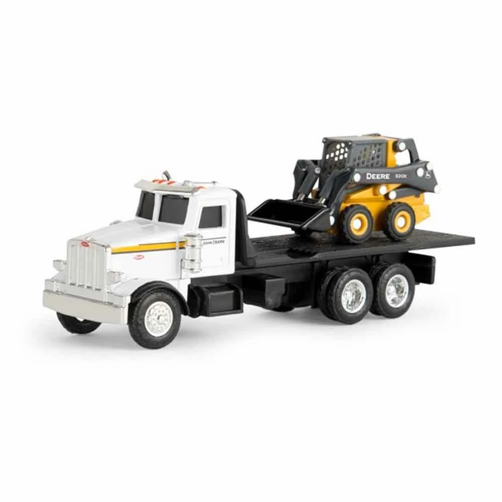 The John Deere 320E Skid Steer Loader with Peterbilt 367 straight truck are durable die-cast and plastic construction which make them great for both indoor and outdoor play.