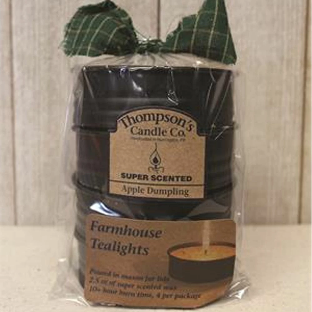 These Thompson's Candle Co. super scented teatlights are made in the USA, have a 10 hour burn time, and features the fragrance of warm apples, cinnamon and nutmeg in a golden pastry crust.