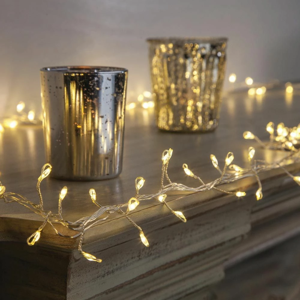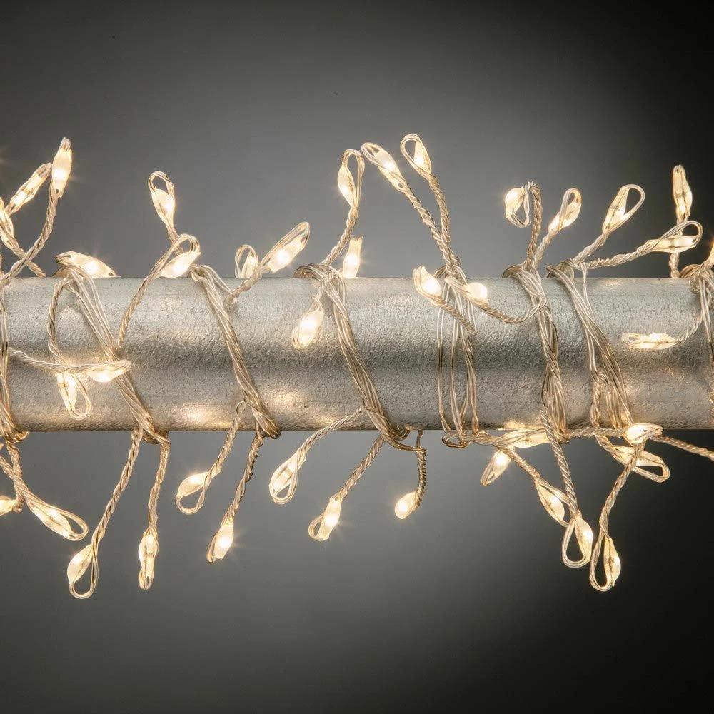 The possibilities for expressing your own unique decorative style are endless with this gorgeous, 6-foot long Everlasting Glow Micro LED Silver Garland. No less than 144 warm white, energy efficient, micro LED lights are affixed along the silver wire at the end of 1-inch long jump-ups to give that dynamic Firecracker accent that will add that special ambiance to any setting. This stunning garland includes a 9-foot long silver lead wire that is connected to an outdoor-capable adaptor. Also included for operation is the 8-function controller, allowing the lights to glow at whatever setting you desire: combination, waves, sequential, slow glow, chasing-flash, slow fade, twinkle-flash and steady on. Perfect for indoor or outdoor use, you'll get years of enjoyment from this beautifully glowing garland!