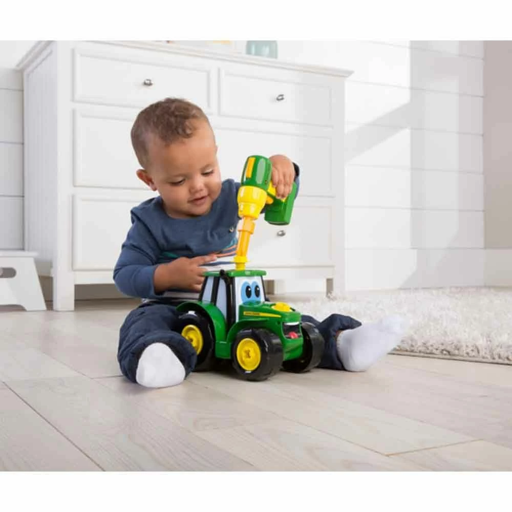 Build-A-Johnny Tractor features two ways to play; free rolling tractor or buildable set. This 16-piece set includes a battery powered drill to take apart and build Johnny Tractor back together again. Made of chunky parts, easy for little hands to assemble. Includes power drill with 2 bits and 13 Johnny Tractor pieces. Ages 18 months and up. Produced by TOMY and officially licensed by John Deere.