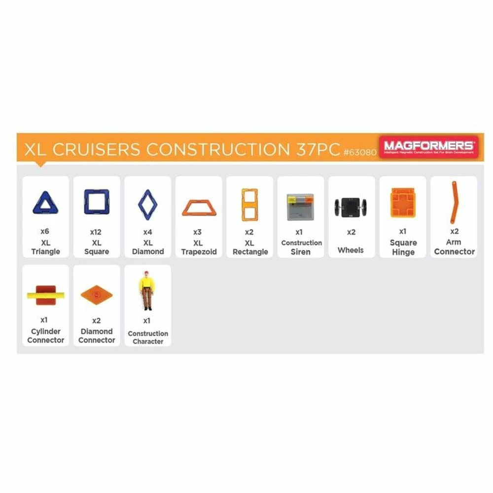 Become a construction worker and build cranes, trucks and diggers with the Magformers XL Cruisers Construction set! Top off your creations by adding a siren and construction worker to your vehicles. Featuring our lighter XL Magformers pieces in orange and yellow any budding engineer is sure to be fascinated by the endless construction possibilities. Neodymium Rare-Earth Magnets For Guaranteed Connectivity.