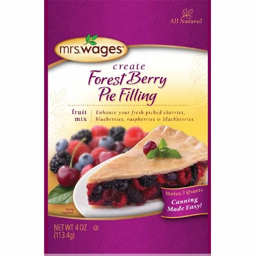 Mrs. Wages® Forest Berry Pie Filling Mix lets you enhance your fresh picked cherries, blueberries, raspberries and blackberries. Create delicious fruit or use prepared pie filling for pies, tarts, cobblers and other desserts..