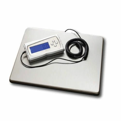 LEM Products Stainless Steel Digital Scale has an expansive 176 square inch stainless steel platform allows you to weigh large items with no problem. Tethered digital display (10' fully extended)can be conveniently mounted or free standing for optimal viewing. Optional LED back-lit display and large digital type is easy to read. Other handy features include a tare function and auto shut off. Perfect for the big jobs or simple everyday use. Includes 4 AA batteries and 110V power adaptor. Weighs in pounds or kilograms.