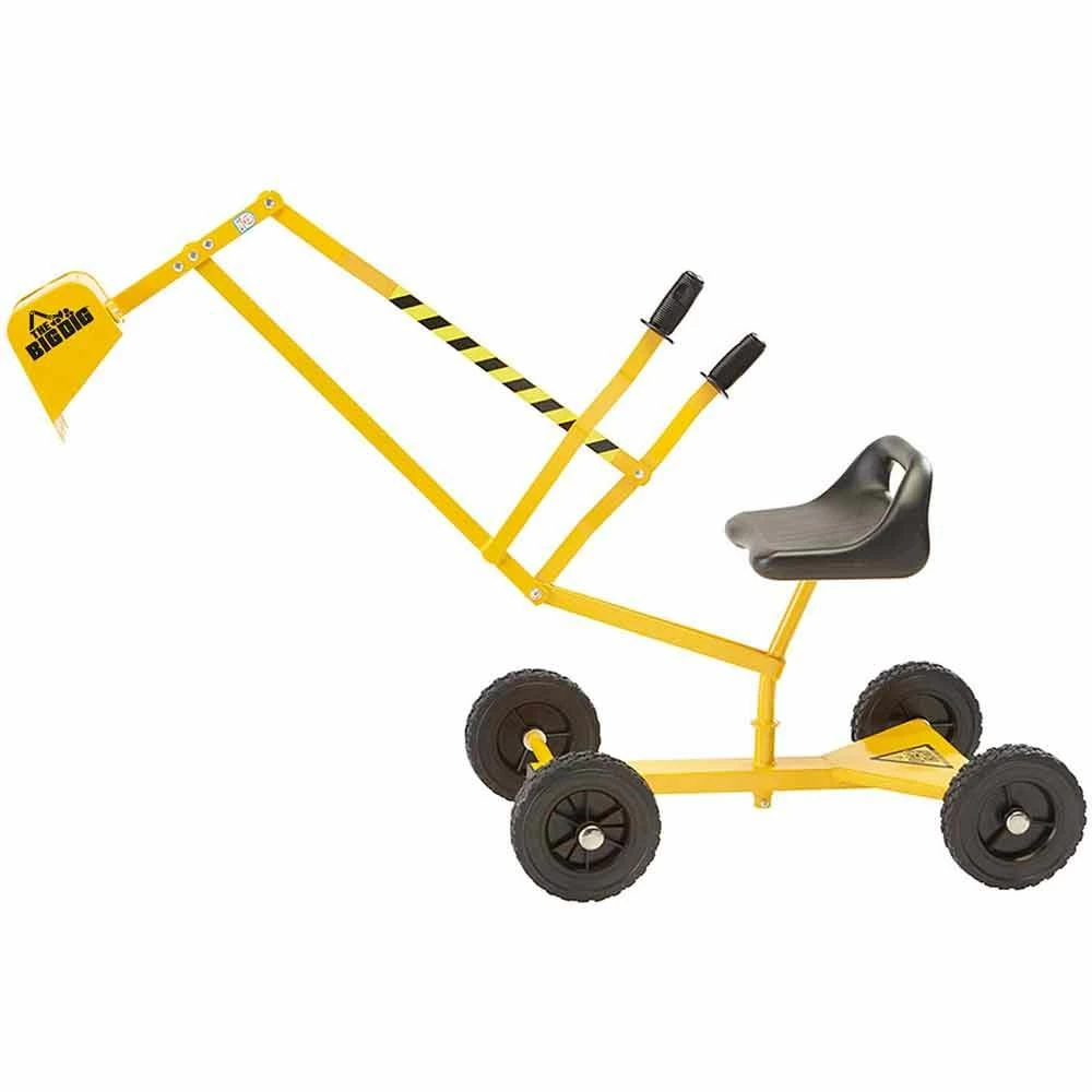 Enjoy all-season fun with The Big Dig and Roll ride-on working crane with wheels! Make your backyard a construction zone for your little engineer or construction manager! This sandbox digger is perfect for sifting sand, moving dirt, and shoveling snow. Dig and dump controls are set onto a wide base on wheels that move backwards and forward. Contoured swivel seat and sturdy metal construction provide stability for your child! The Big Dig and Roll is a sturdy, all-season toy featuring metal construction with rubber wheels. The two-handed controls make digging fun and easy and helps kids improve their manual dexterity and hand-eye coordination!