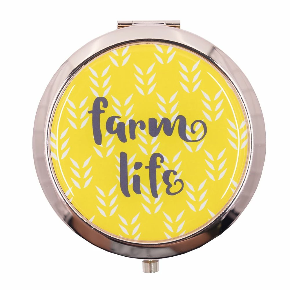 This Mary Square compact mirror is the perfect purse accessory featuring normal and magnified mirror strengths. Designs are exclusive to Orscheln Farm & Home.