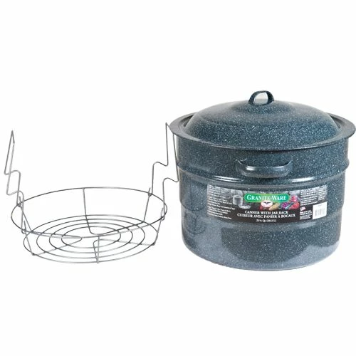 Columbian Home Products Granite-Ware Canner with Jar Rack lets you eat healthy stay local and save money. It holds 7 quart jars, 9 pint jars or 12 half-pint jars. Made in USA.