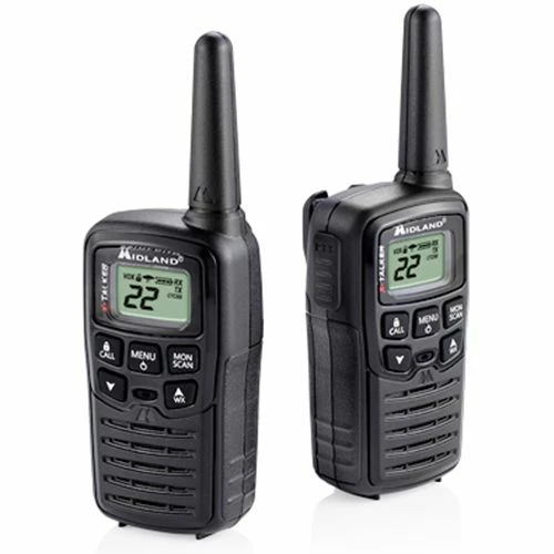 Midland® X-Talker Two-Way Radio features clear reception, transmission and sound quality. It has up to a 20-mile range and features 22 channels, channel scan, 38 privacy code and weather alert technology. Each radio is powered by three AAA batteries (sold separately). This product is not compatible with Midland accessories.